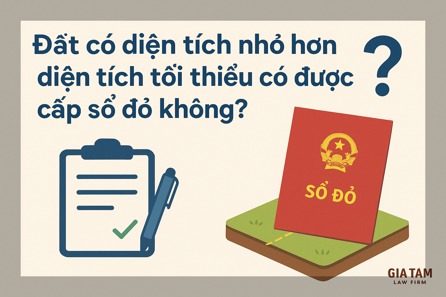 Trong bài viết này, Công ty Luật Gia Tâm sẽ phân tích chi tiết, cập nhật quy định mới nhất, đồng thời đưa ra các trường hợp được – không được cấp sổ đỏ đối với đất có diện tích nhỏ hơn diện tích tối thiểu. Nội dung dưới đây giúp bạn đọc nắm rõ bản chất pháp lý, tránh nhầm lẫn và biết cách xử lý hồ sơ hiệu quả.